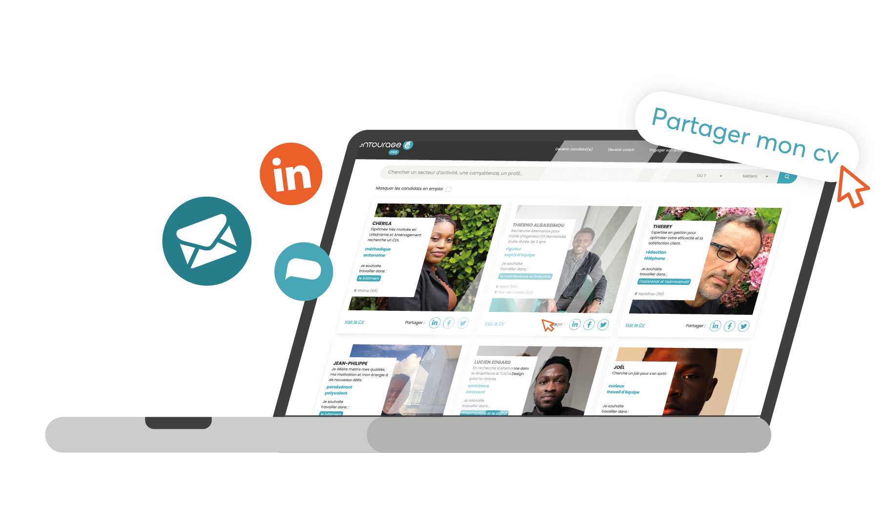Entourage Pro est un réseau professionnel solidaire en ligne. Il permet à des personnes éloignées de l’emploi de développer leur réseau et d’accéder à des opportunités professionnelles grâce aux entreprises, coachs bénévoles et associations partenaires.